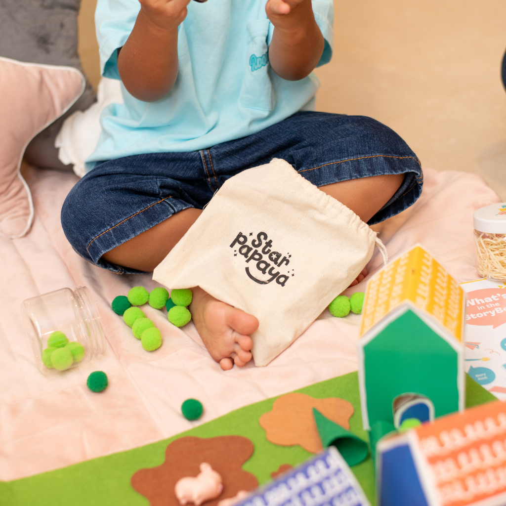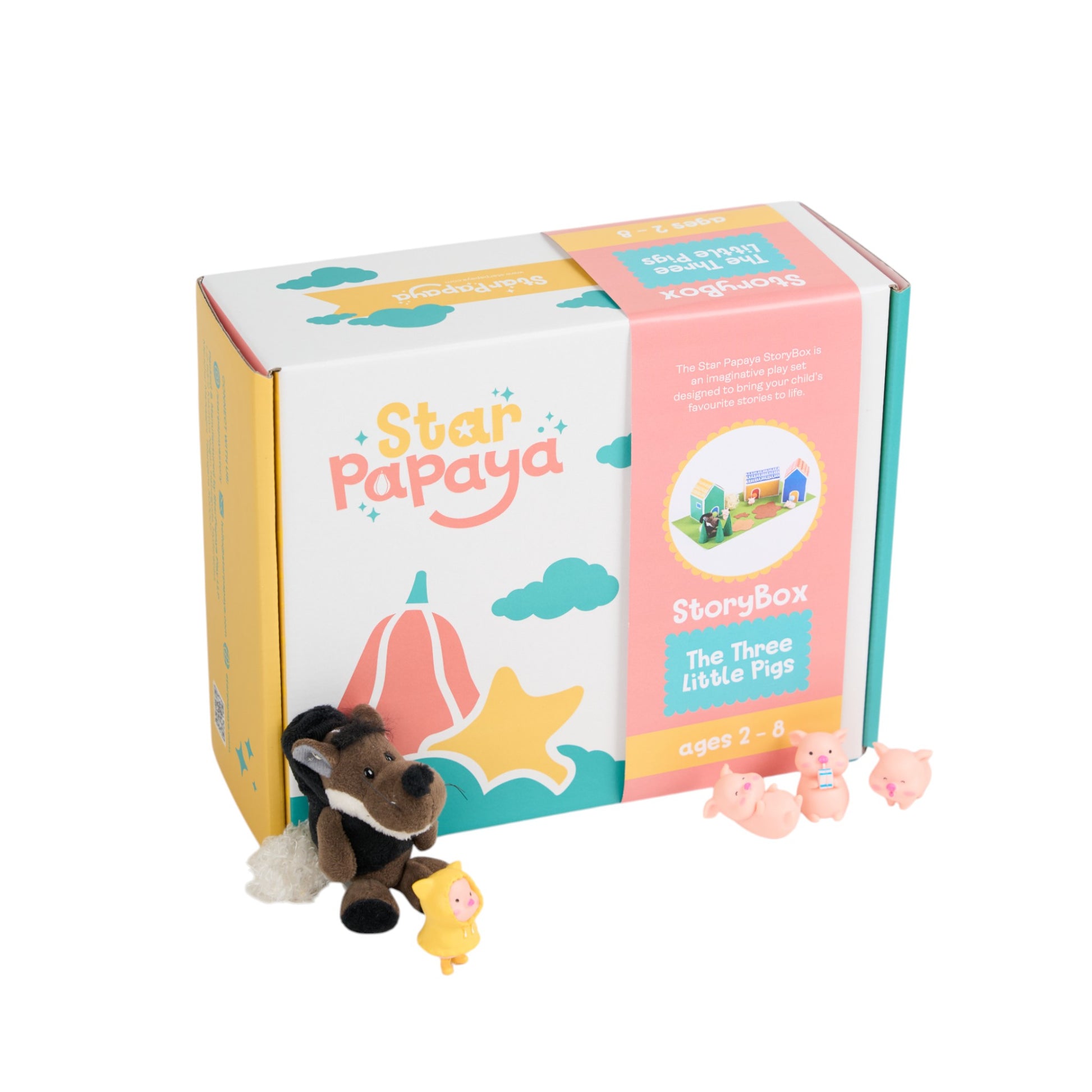 The Star Papaya StoryBox is an imaginative play set designed to bring your favourite stories to life. The StoryBox includes a story book, story characters, a hand-made play mat, and sensory props.