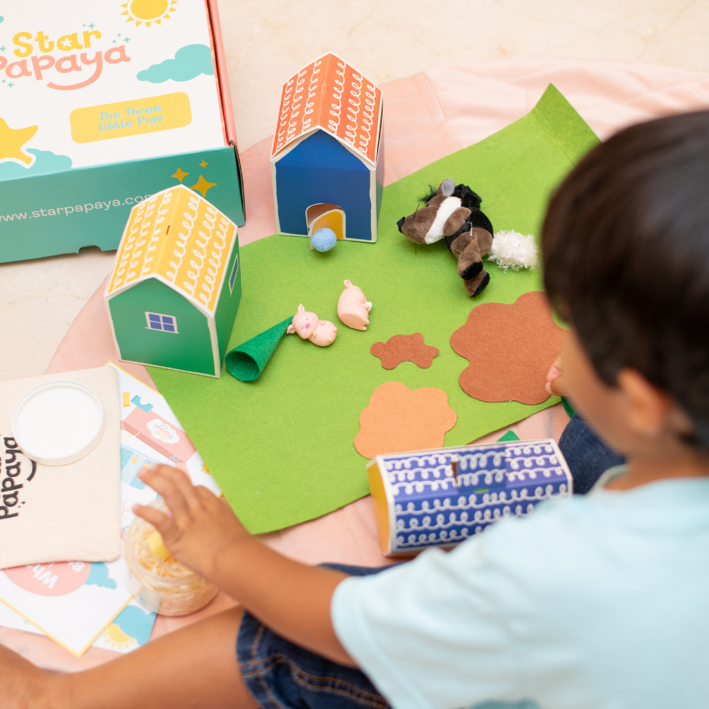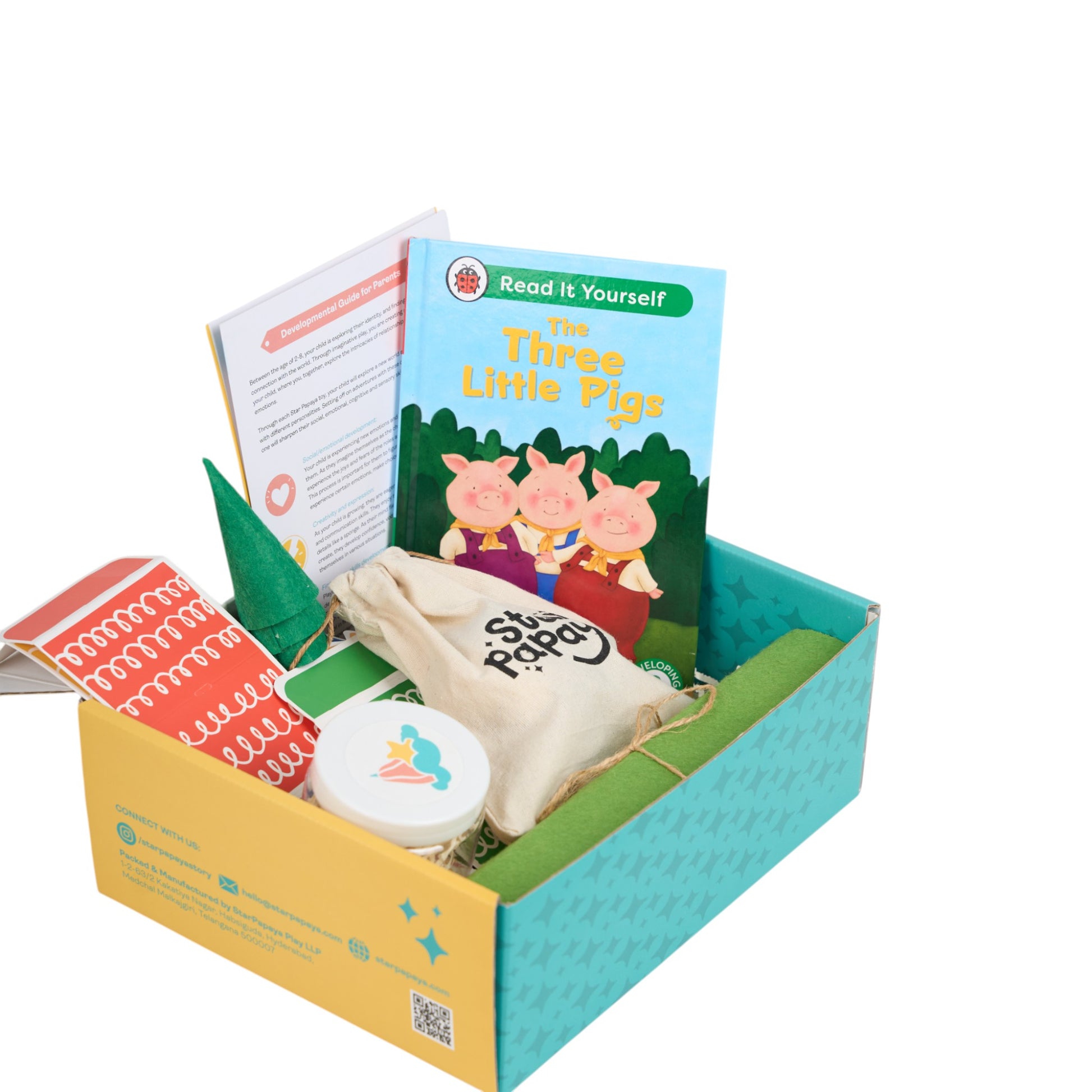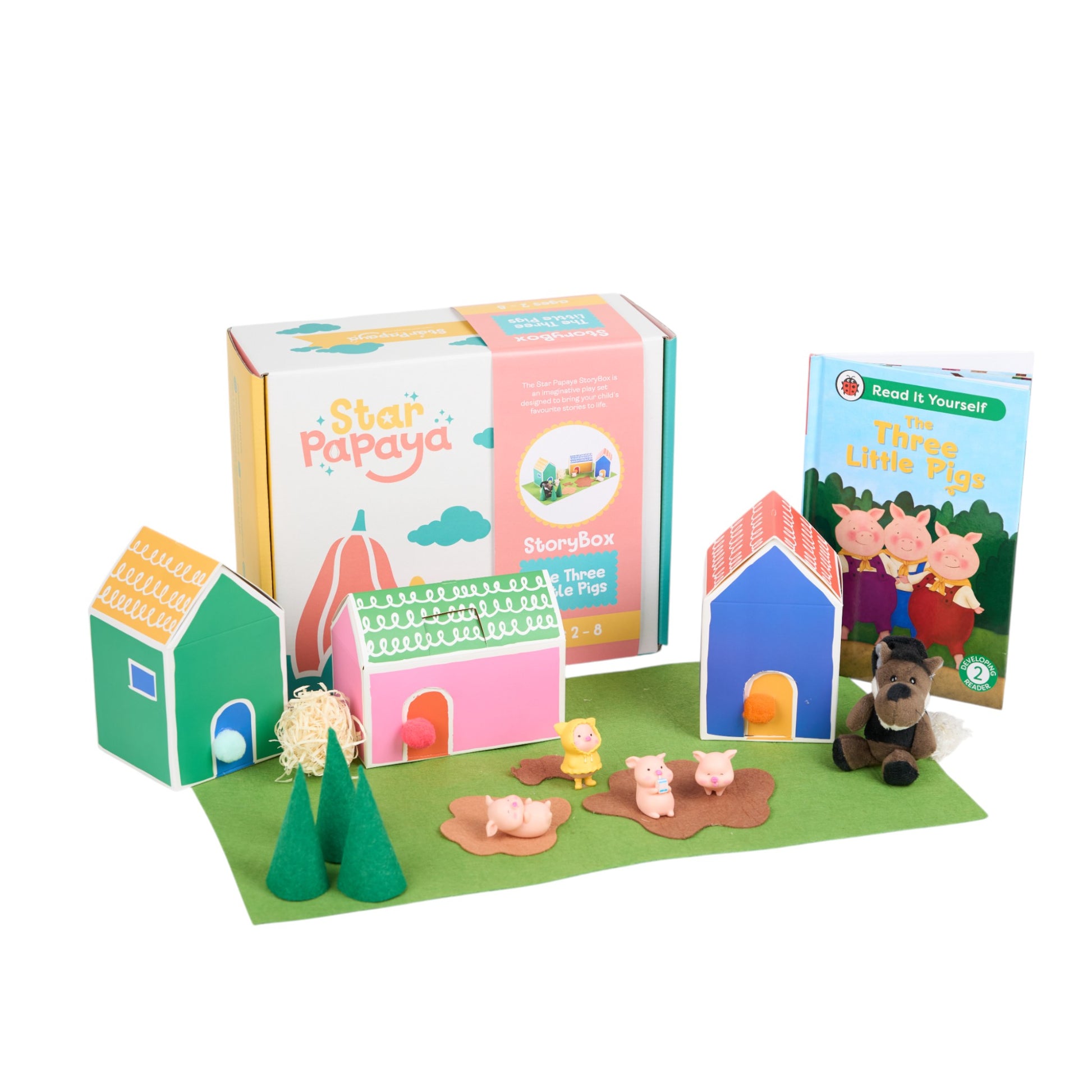 Through The Three Little Pigs StoryBox, you will meet the three piggies with different personalities and the (not-so) scary big bad wolf, plus a loving, supportive mommy pig. Your child will love going on an adventure with the story characters, while sharpening up their social, emotional, cognitive and sensory development.