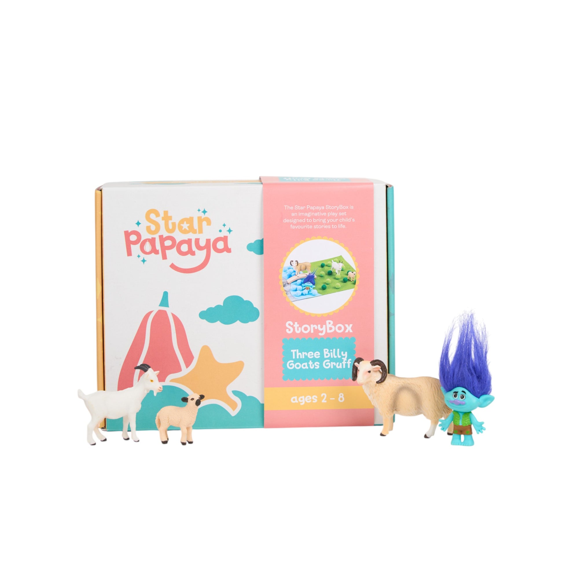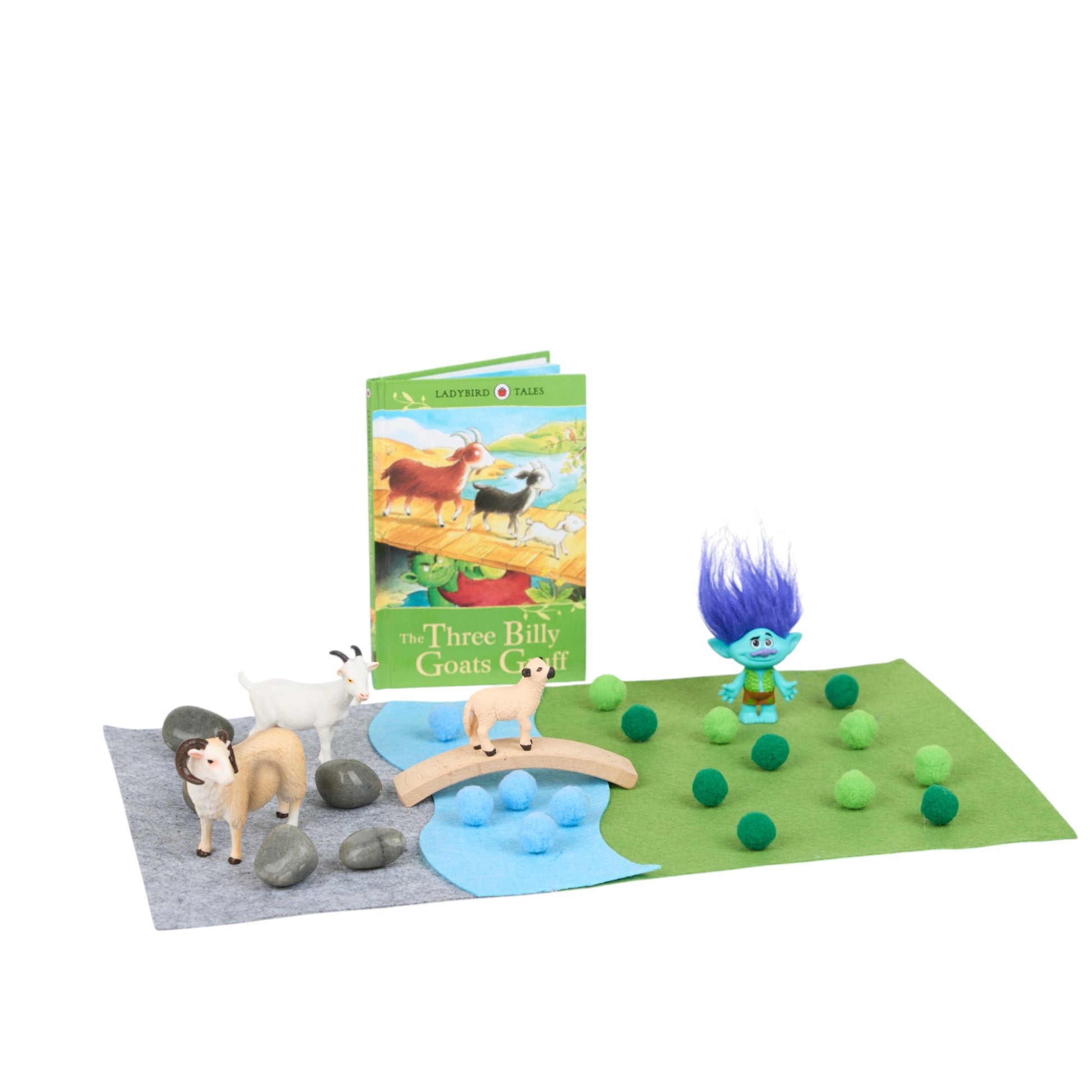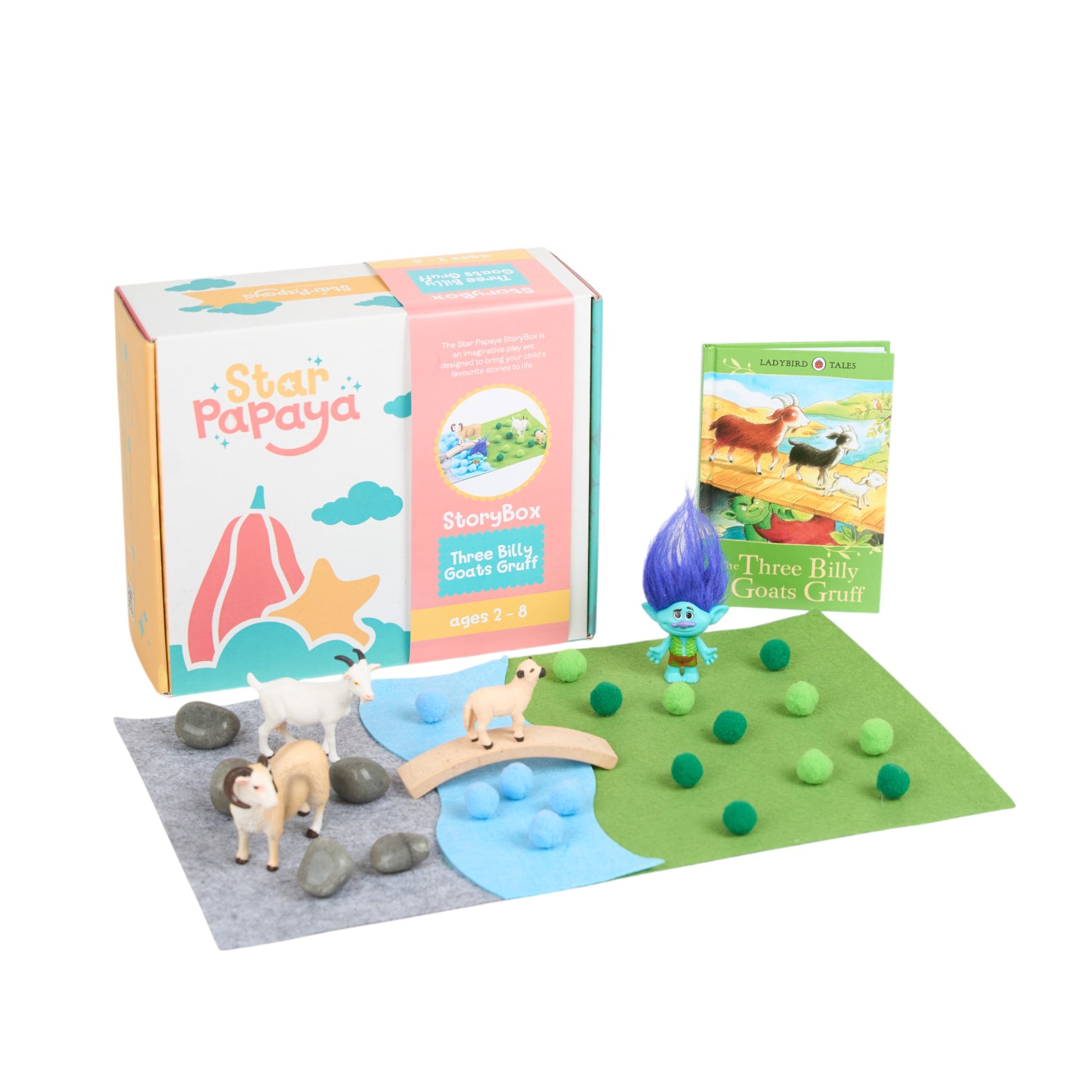 Through The Three Billy Goats Gruff StoryBox, you will meet the small, middle-sized, and big billy goats gruff, along with the not-so-scary troll who is a bit silly in our opinion. Your child will love going on an adventure with the story characters, while sharpening up their social, emotional, cognitive and sensory development.