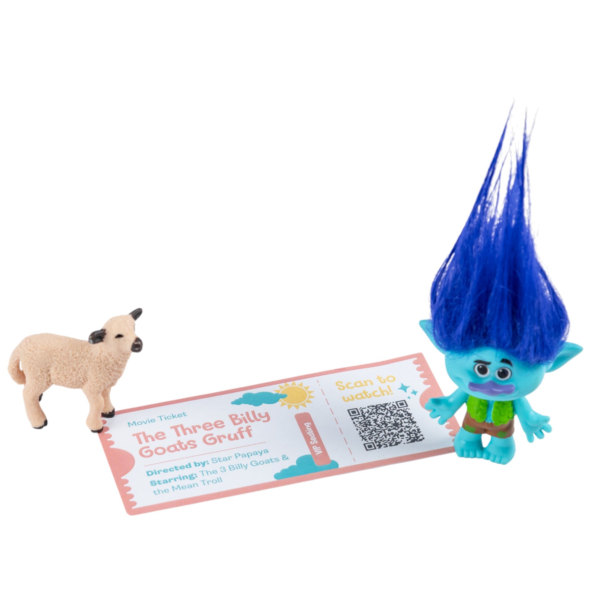 You will also find a movie ticket inside the box - scan the code on the ticket to enjoy a 5-minute movie with your little one that features the 3 billy goats and not-so-scary troll from the StoryBox. The movie will also give you prompts on how to set up the play set for your little one, to ensure hours of imaginative fun!