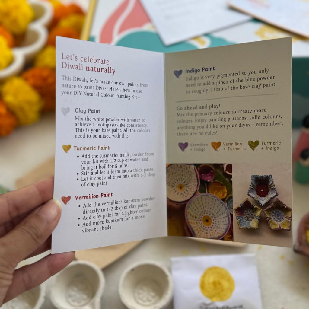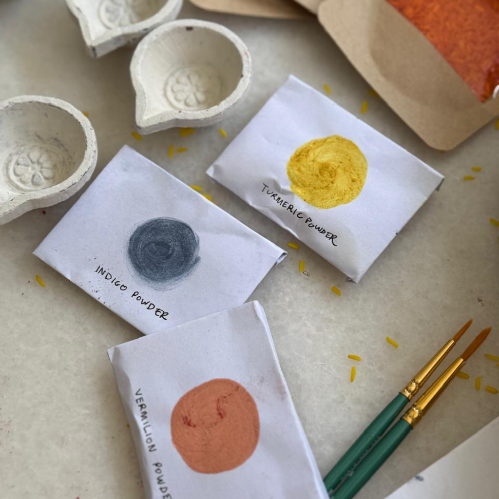 - A DIY set of 3 natural paint colours - Clay base, Turmeric, Vermilion and Indigo