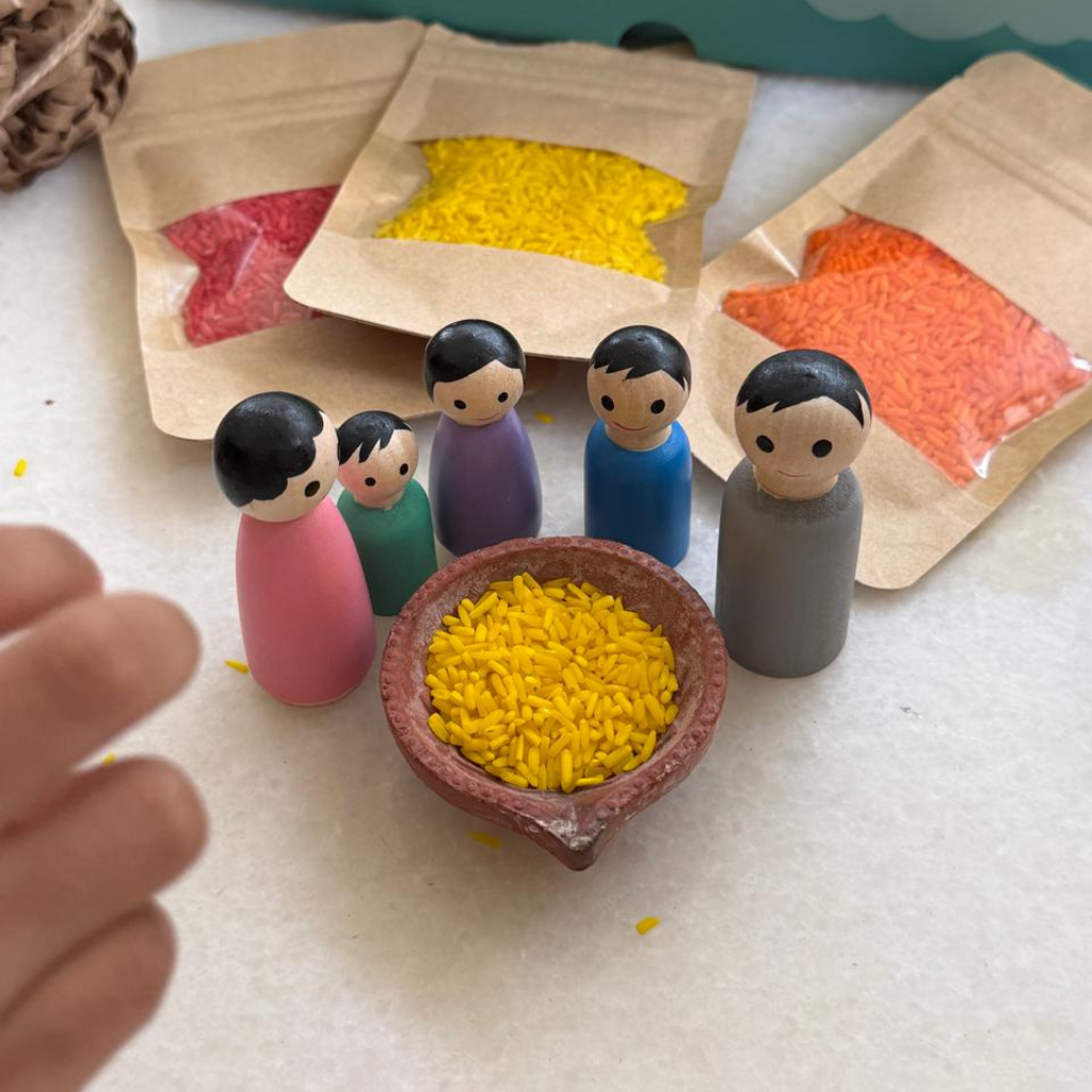 Through the Festival of Lights PlayBox, your child discover the colours, rituals and warmth of a slow and magical family celebration. No noise, no smoke, just beautiful stories, colours and nature. This interactive set encourages sensory exploration, artistic expression, and hands-on fun — making Diwali even more memorable for little ones.