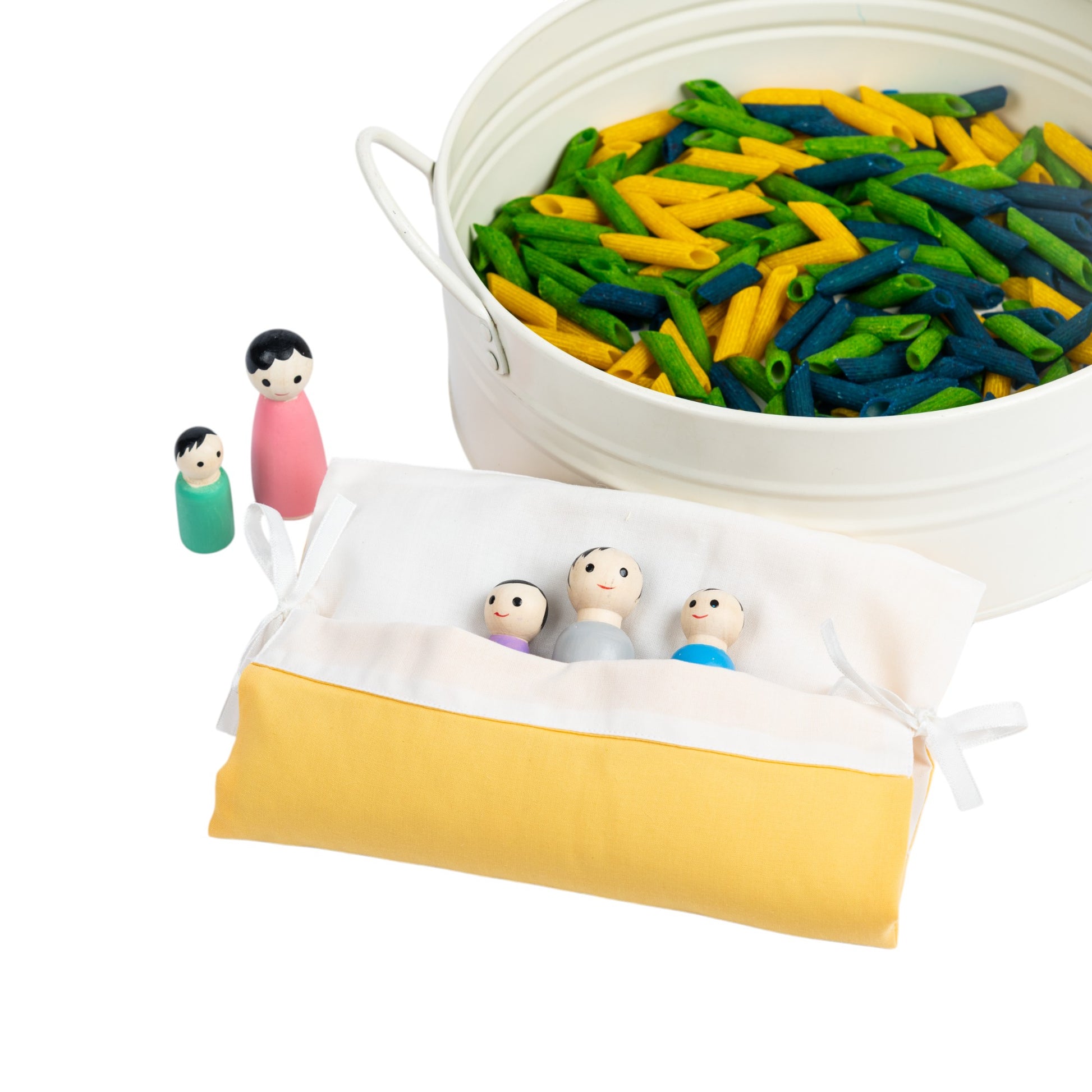 Experience endless imaginative play with My Big Happy Family SensoryBox. The set includes 5 peg dolls, tri-coloured pasta for sensory play, and a cozy bed for the family to rest in. Watch as little ones create their own scenarios and play out fun days with the family while developing their fine-motor skills.