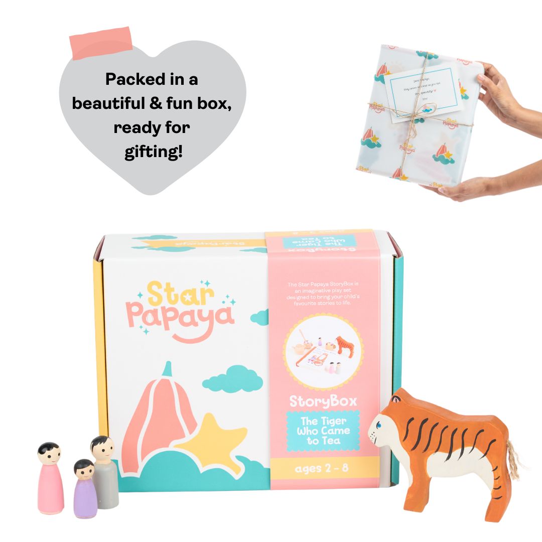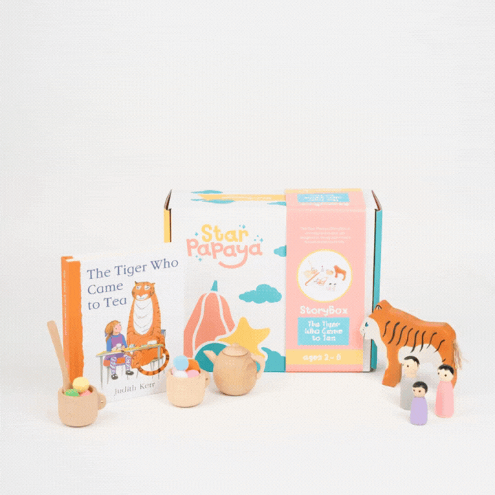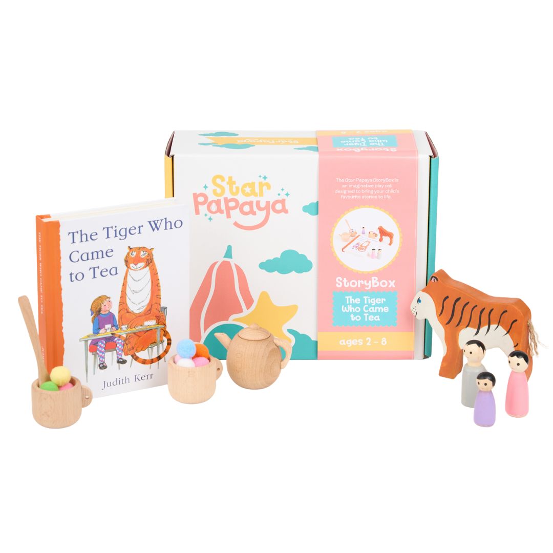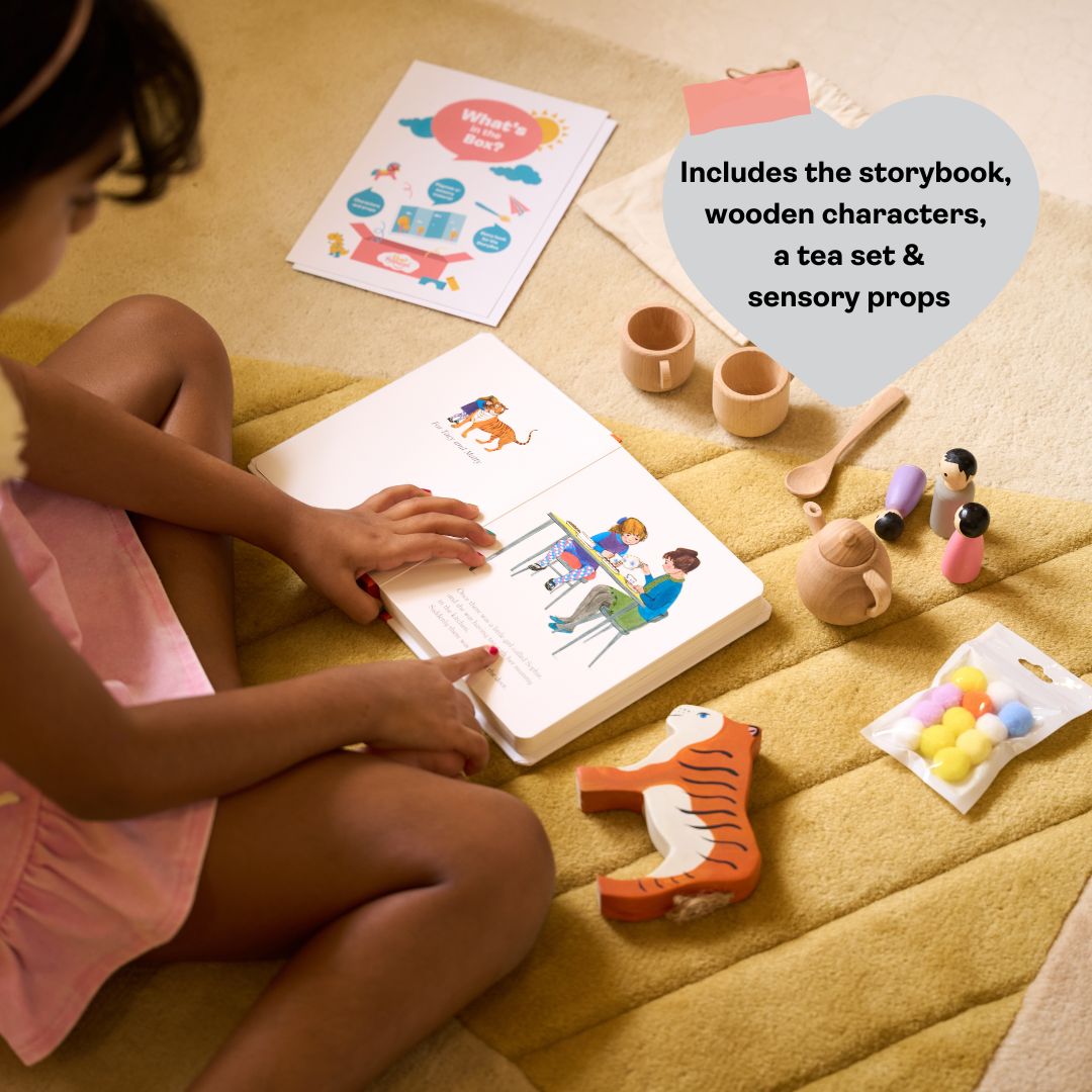 Inspired by the beloved classic, The Tiger Who Came to Tea, this StoryBox turns play time into hands-on, whole-brain learning. When children move from listening to a story… to playing it out… something powerful happens. The story comes alive — and so does their learning.